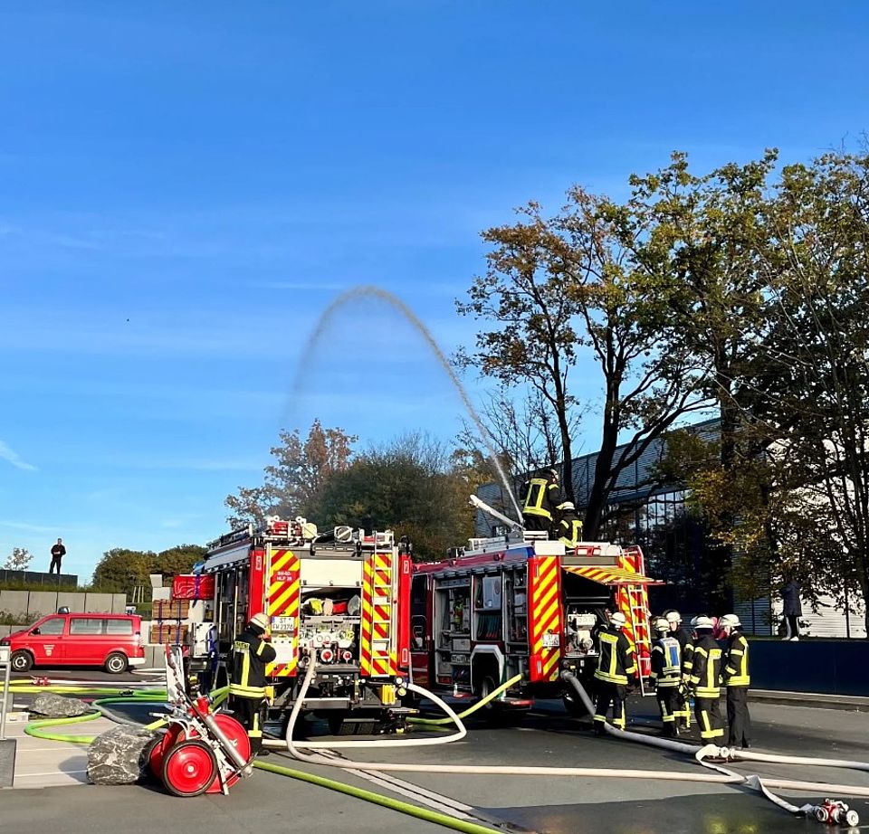 Das Einsatzszenario führte uns nach Borghorst zur Firma Gözze. Bei der Übung ging es um die Brandbekämpfung, Menschenrettung sowie die adäquate Versorgung vieler Verletzter/Betroffener gleichzeitig. Aber natürlich auch um die Zusammenarbeit mit allen Beteiligten.